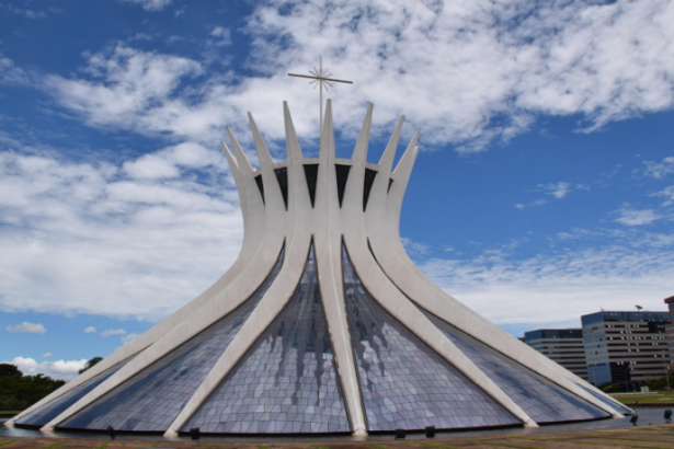 A instalação de um banco vermelho gigante no centro de Brasília como parte de uma…